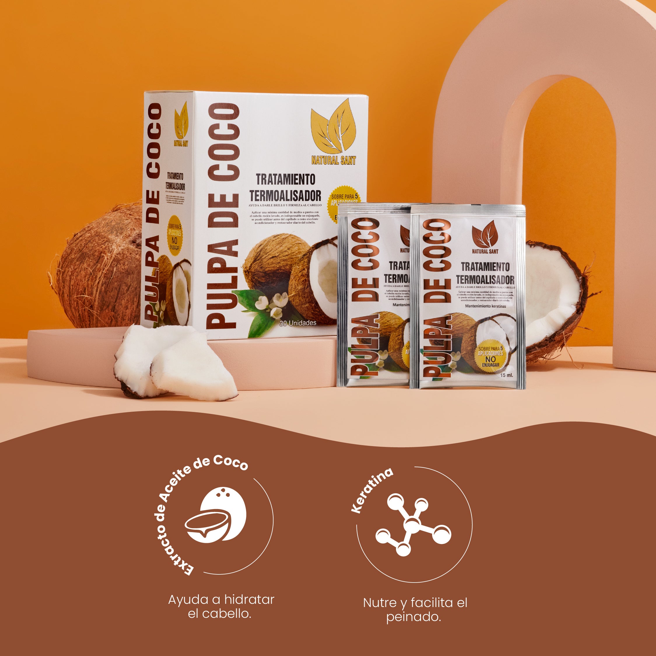 $50.000Aplicar el SHAMPOO CON ACEITE DE COCO Y KERATINA sobre el cuero cabelludo y enjuagar con abundante agua. Después aún con el cabello húmedo, se aplica una mínima cantidad del TRATAMIENTO PULPA DE COCO en todo el cabello, NO se enjuaga ni se combina con acondicionador alguno, debe dejarse actuar hasta el próximo lavado. NO es necesario cepillar ni planchar.