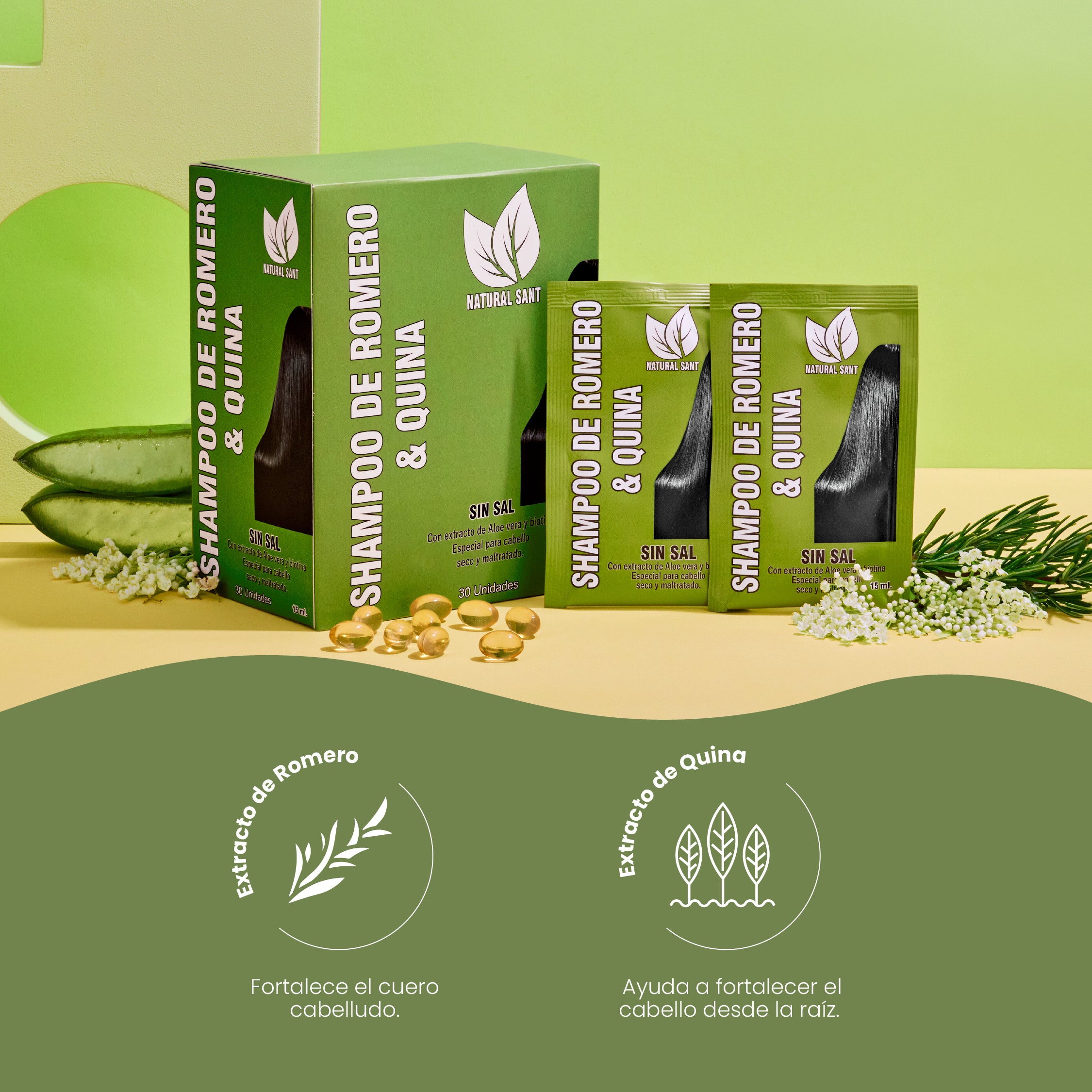 Shampoo de Romero y Quina Caja x 30 sobres