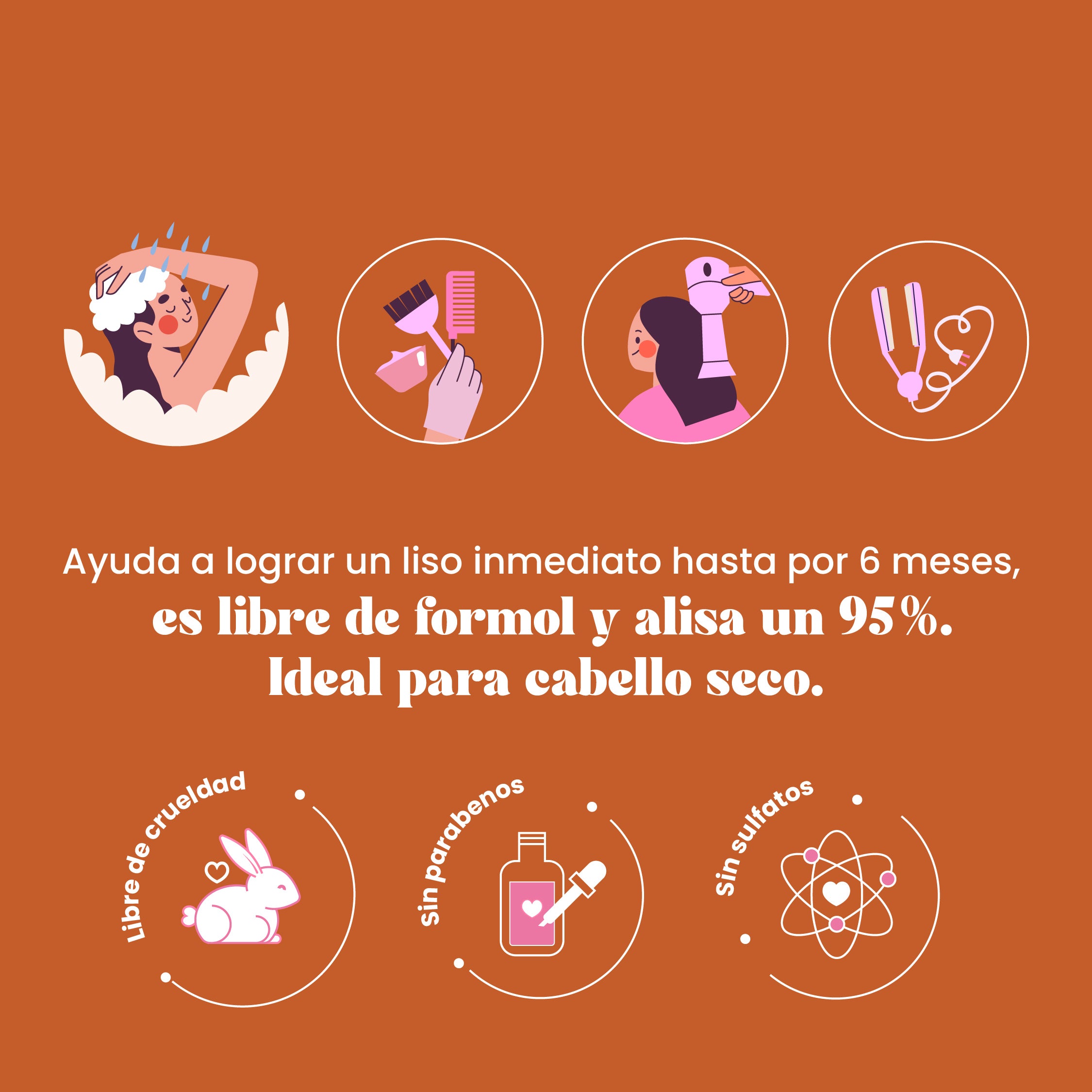 6. Después de terminar el planchado, puedes retirarlo con shampoo y tratamiento de cebolla, romero y biotina, recomendamos retirarlo el mismo día.